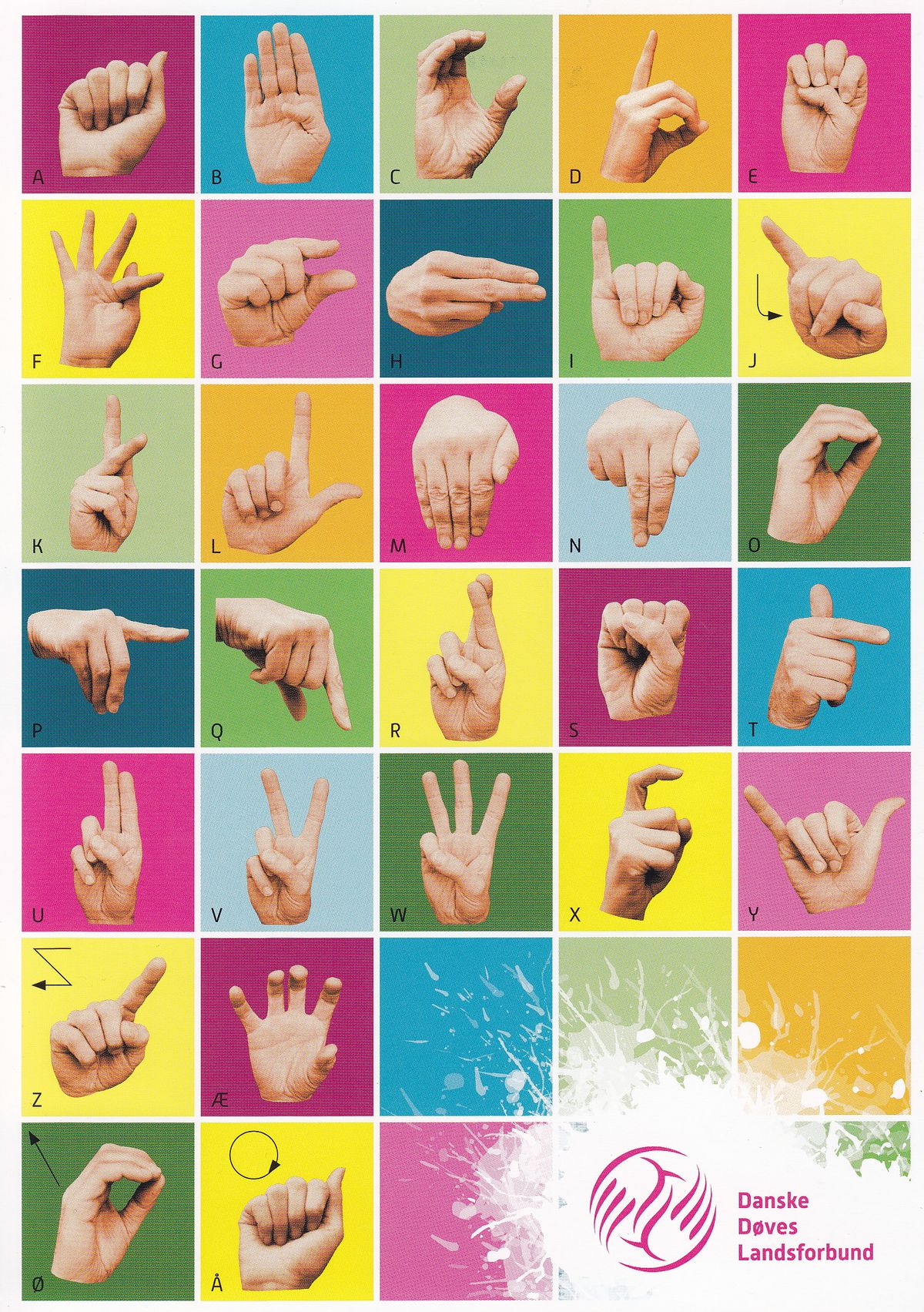 Desuden er der tilføjet tegn for bogstaverne æ, ø og å fordi man jo har brug for disse bogstaver når man staver på dansk. Se billedet af det nye håndalfabet nedenfor.
